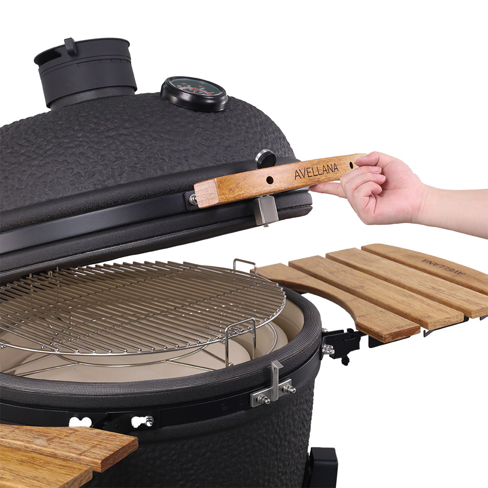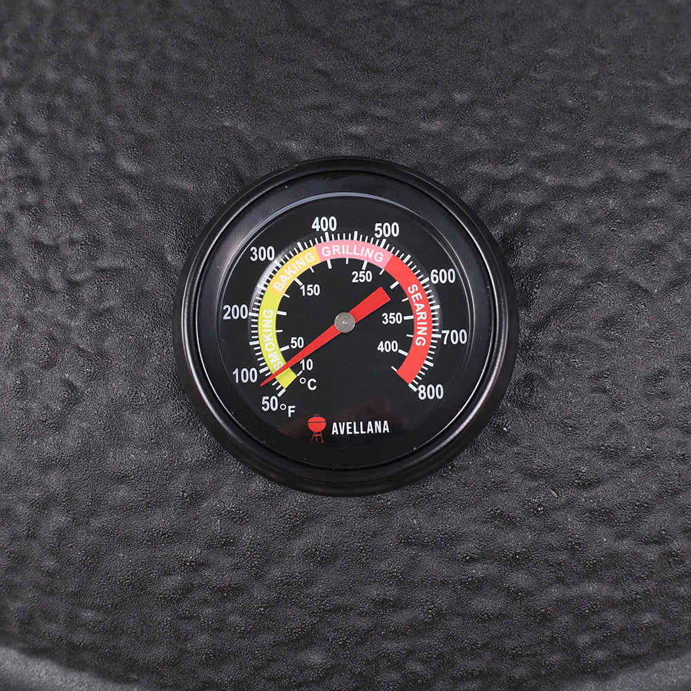 Termómetro XL para un Control Exacto: La precisión se mantiene a pesar de la escala. Nuestro termómetro de gran formato garantiza una lectura instantánea y rigurosa, vital para mantener esa estabilidad térmica que solo el kamado de cerámica puede ofrecer, desde el ahumado lento hasta el horneado rápido.
